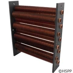 This heat exchanger assembly is designed to use with Pentair MiniMax Plus, PowerMax pool and spa heater model 150. Assembly without heads. This products weights 20 pounds. Measures 12-1/4-inch length by 3-inch height by 14-3/4-inch width.