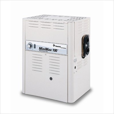 The MiniMax 100 is a compact, lightweight and efficient gas fired high performance aboveground pool and spa heater. It can be connected to schedule 40 CPVC or ABS pipe and has a built-in top. It includes quiet and dependable operation from packaged burner system, bronze headers, quick flange allow 1-1/2 FIP connect, the controls have been designed for very easy access and are user friendly, low profile and lightweight, perfect for one-man installation and it installs to 3,500-feet altitude. Reliable direct-spark ignition system is available in propane gas versions. Measures 22-inch length by 28-inch height by 19-inch width.