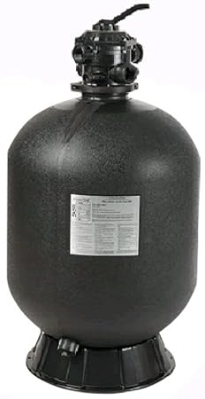 This Cristal-Flo II top-mount high rated pool and spa sand filter has durable one-piece extra-thick molded polyethylene tank. Internal air relief hole allows air to automatically escape, preventing high pressure buildup. 6-Position valve allows to perform all necessary water movement functions; a transparent sight-glass adapter is included. Large drain plug is easy to get at for removing and installing by hand or with tools if required. Contemporary style with a textured black finish that provides superior performance in all weather conditions. It has effective filtration area 3.5-square feet and flow rate is 75-GPM. Available in black color. Measures 28-inch length by 50-inch height by 28-inch width.