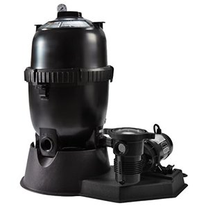 PLM-series filter aboveground modular media systems handle dirt loads of up to 15 times more than sand filters of equivalent size. Available with rugged, large-capacity OptiFlo series pump and convenience and virtually maintenance-free operation. Compact design fits easily in tight installations and sleek-looking in matte black finish. The posi-locking ring is safe and easy to use access. Split-tank design permits rinse-in-place cleaning. Flow-balanced tank hydraulics direct water through each side of filter module with uniform dirt-loading prevents clogging. Information panels and top-mounted pressure gauge are positioned for easy reading. It comes 1-horsepower OptiFlo. 100-square feet effective filtration area, available with 1-horsepower pump. It includes 3-feet twist lock cord, 6-feet hose kit and has flow rate of 100-GPM. It is UL, CSA certified product. Tank measures 28-inch height by 15-inch diameter.