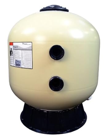 This TR40 Triton II side mount pool and spa sand filter without valves has heavy-duty closure which provides easy inspection and features an easy to read pressure gauge with air relief valve. Swing-away diffuser allows instant access to sand and all internal parts and all internal parts are threaded for ease of service. Internal air bleed and bulkhead connectors are threaded for easy installation and service. Combination sand and water drain makes servicing and winterizing fast and easy. Maximum operating pressure 50 PSI. It has effective filtration area 1.92 square feet and flow rate is 38-GPM. Available in almond color. Measures 19-1/4-inch length by 29-3/4-inch height by 19-1/4-inch width.